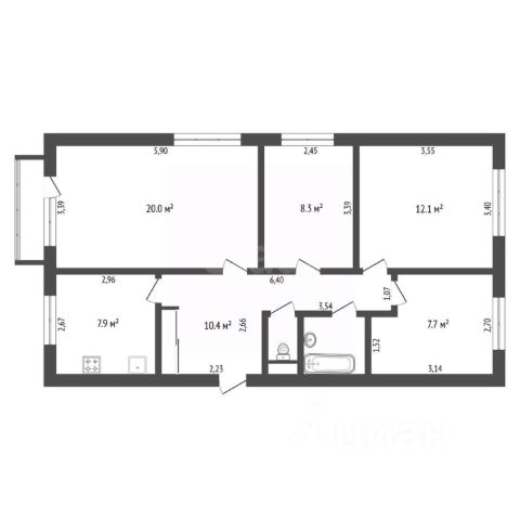 жилая комната 20,70 кв.м.,