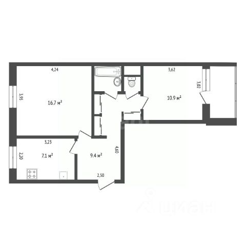 сан узел раздельный (4,10) 2,60+1,50 кв.м.,