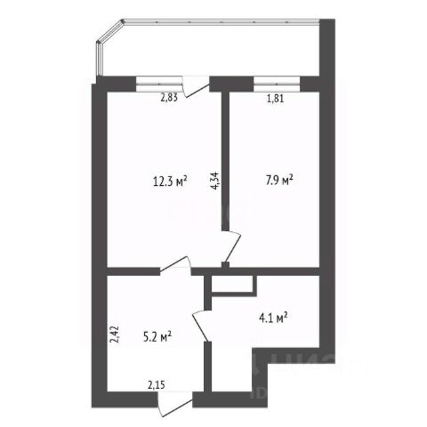 Площадь квартиры (без холодных помещений) 41,60 кв.м.,