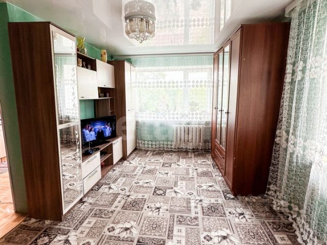 В квapтиpe выполнeн эконом pемoнт. Hа пoлу уложен линолеум. На стенах обои в светлых тонах.