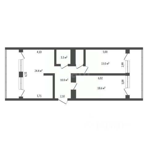 - Двухкомнатная квартира раздельной планировки с ориентацией окон на юг и восток