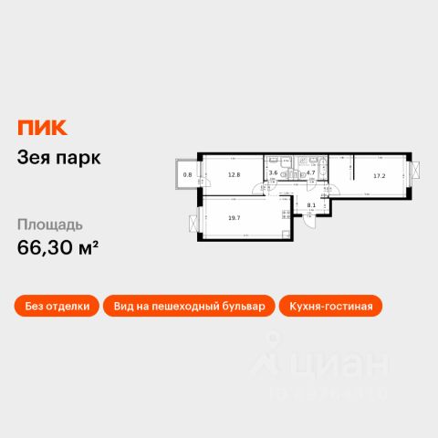 Продаётся 2-комн. квартира площадью 61 кв.м на 4 этаже 9 этажного дома (Корпус 1, Секция 1) проекта ПИК Зея парк. Светлый просторный подъезд на уровне земли, функциональная планировка, большие окна, предчистовая отделка. "Зея парк" - новый квартал со всем необходимым для комфортной жизни. До центра Благовещенска - 15 минут. Внутри "Зея парка" много места для тихих прогулок и активного отдыха. В каждом дворе будет парк с детскими и спортивными площадками. Рядом с домами пройдёт широкий пешеходный бульвар, где мы установим удобные скамейки и высадим кустарники и цветы и взрослые деревья. В квартиры и дворы сможет беспрепятственно проникать солнце благодаря переменной высоте корпусов - 9 и 16 этажей. В домах будут просторные и светлые подъезды с дизайнерской отделкой, витражным остеклением и двумя выходами на уровне земли: во двор и на улицу. В квартирах большие окна, застеклённые балконы и лоджии — будет светло и уютно даже зимой. Все квартиры сдаются с предчистовой отделкой: самые грязные и шумные работы к моменту выдачи ключей уже закончатся. На первых этажах домов разместятся магазины, кафе и другие сервисы, а на подземных — индивидуальные кладовые. В 1013 минутах пути на машине — парк Дружбы, аквапарк "Плаза" и ТРЦ "Острова". Рядом с жилым кварталом есть автобусная остановка, от которой можно добраться в любую часть города. Артикул 887664 (Застройщик ООО "СЗ "ПИК Благовещенск") Продам 2-комнатную квартиру с балконом в Благовещенске.