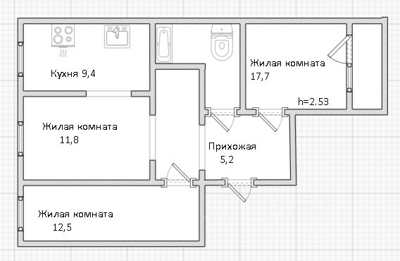 Арт. 107407489 Предлагаем к продаже 3-комнатную квартиру в г. Завитинске (район "Городок"). *Дом панельный, 1982 года постройки, электрифицирован. *5/5 этаж. *Общая площадь квартиры - 67,5 кв.м: -комнаты - 18,3+11,2+12,3 кв.м; -кухня - 7,1 кв.м; -с/у - 2,6+1,1 кв.м; -коридор - 11,9 кв.м; -лоджия 3 кв.м (общая площадь 6 кв.м.). *МПО, на восточную (зал и кухня) и западную (2 комнаты и лоджия) стороны света. *На полу мдф плиты + линолеум. *Лоджия не застеклена, с/у раздельный. *Отопление центральное, установлен водонагреватель. *В шаговой доступности автобусная остановка, магазин "Арбат", стадион "Южный", СТО, парк Победы, школа 3. *Квартира требует ремонта. *В собственности 11 лет. *1 взрослый собственник. Продается 3-комнатная квартира до 6 млн. рублей в Амурской области.