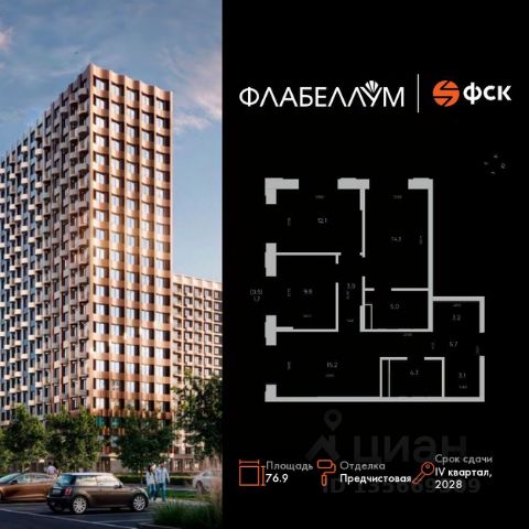 Прямая продажа от застройщика! Жилой Комплекс комфорт-класса. Продаётся 3-к квартира номер 122 общей площадью 76.9 кв.м. на 13-м этаже 16 этажного здания. Предчистовая отделка. Цена с учётом скидки. Особенности квартиры: Квартира с предчистовой отделкой. Вам не придется заниматься черновыми и трудоёмкими работы, а чистовую отделку и дизайн - сделайте на свой вкус. Информация о комплексе: ЖК "Флабеллум" - современный жилой комплекс на первой береговой линии в Благовещенске, где городская динамика встречается с природной тишиной Амура. Лейтмотив проекта - движение воздуха и воды, лёгкость и пластика природных форм. Название "Флабеллум" отсылает к вееру: символу мягкости, ритма и раскрывающегося пространства. Подобно плавному взмаху, архитектура комплекса раскрывается навстречу свету и панорамам реки, создавая ощущение простора и свободы. Внутренняя инфраструктура: Закрытая благоустроенная территория спроектирована как безопасное пространство для отдыха и общения. Концепция "двор без машин" создаёт ощущение камерности и спокойствия, а видеонаблюдение и контроль доступа обеспечивают дополнительный уровень безопасности. Для семей с детьми предусмотрены современные игровые площадки, где можно исследовать мир, развивать воображение и проводить время на свежем воздухе. В шаговой доступности находятся образовательные учреждения и необходимая инфраструктура. На первых этажах разместятся коммерческие помещения - магазины и сервисы повседневного спроса. Всё необходимое будет рядом, чтобы жизнь оставалась удобной и размеренной.