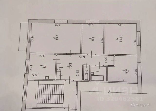 ПАРАМЕТРЫ: общая площадь 80 кв.м, из неё: жилая 57 кв.м, подсобная - 19 кв.м, балкон 2,6 кв.м. Потолки - 2,62 м