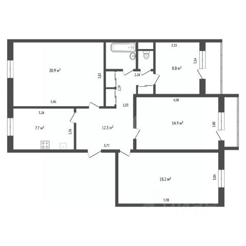Комнаты 20,2, 18, 14,5 и 8 м² - окна на юг и север, квартира светлая в течение всего дня. Кухня 8,3 м², полностью укомплектована: рабочая поверхность со шкафами, варочная панель, духовой шкаф, посудомоечная машина, холодильник, морозильная камера, микроволновая печь. Проточный водонагреватель на 6 кВт - горячая вода всегда есть, независимо от сезона.