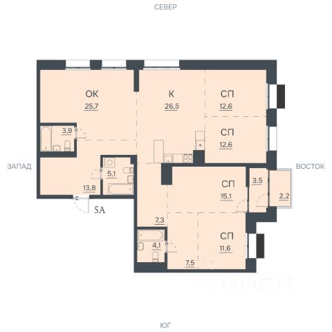 • ✓ В базе Циан 1 5-комнатных квартир в кирпично-монолитном доме в Благовещенске