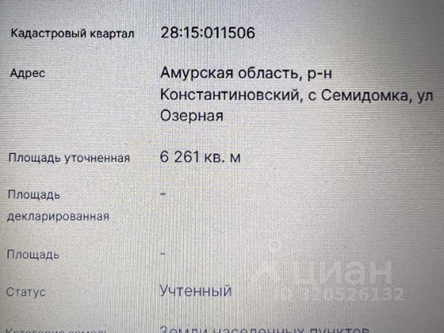Продается участок под строительство.. Вид разрешенного использования- для ведения личного подсобного хозяйства. Рядом озеро. Шесть километров до Амура. Участок без построек. Есть возможность подведения электричества. Категория земель земли населённых пунктов, что открывает перед вами широкие возможности для индивидуального строительства. Вы сможете реализовать свои мечты о собственном доме в окружении природы и свежего воздуха, а также насладиться спокойствием и комфортом загородной жизни. Окрестности участка радуют глаз: здесь уже активно развивается коттеджная застройка, что делает данный участок особенно привлекательным для инвестиций. Выгодное расположение гарантирует рост цен на недвижимость в будущем, что станет отличным вложением ваших средств. Не упустите шанс стать владельцем этого замечательного земельного участка по привлекательной цене! Мы также предлагаем помощь в оформлении ипотеки на выгодных условиях, чтобы процесс покупки стал для вас максимально комфортным и простым. Этот участок идеальное место для вашего будущего дома, где вы сможете наслаждаться жизнью вдали от городской суеты. Звоните прямо сейчас и узнайте больше о вашем новом земельном участке! Код пользователя: 164544 Номер в базе: 9850956