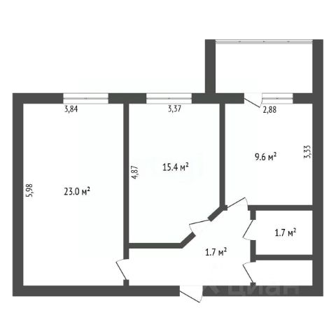 - Двухкомнатная квартира раздельной планировки с ориентацией окон на юг и восток