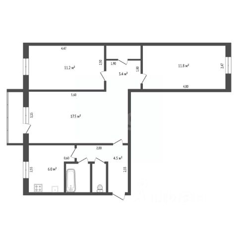 Площадь квартиры с холодными помещениями 56,5 кв.м.,