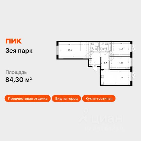 Продаётся 3-комн. квартира площадью 84,3 кв.м на 7 этаже 9 этажного дома (Корпус 3, Секция 2) проекта ПИК Зея парк. Светлый просторный подъезд на уровне земли, функциональная планировка, большие окна, предчистовая отделка. "Зея парк" - новый квартал со всем необходимым для комфортной жизни. До центра Благовещенска - 15 минут. Внутри "Зея парка" много места для тихих прогулок и активного отдыха. В каждом дворе будет парк с детскими и спортивными площадками. Рядом с домами пройдёт широкий пешеходный бульвар, где мы установим удобные скамейки и высадим кустарники и цветы и взрослые деревья. В квартиры и дворы сможет беспрепятственно проникать солнце благодаря переменной высоте корпусов - 9 и 16 этажей. В домах будут просторные и светлые подъезды с дизайнерской отделкой, витражным остеклением и двумя выходами на уровне земли: во двор и на улицу. В квартирах большие окна, застеклённые балконы и лоджии — будет светло и уютно даже зимой. Все квартиры сдаются с предчистовой отделкой: самые грязные и шумные работы к моменту выдачи ключей уже закончатся. На первых этажах домов разместятся магазины, кафе и другие сервисы, а на подземных — индивидуальные кладовые. В 1013 минутах пути на машине — парк Дружбы, аквапарк "Плаза" и ТРЦ "Острова". Рядом с жилым кварталом есть автобусная остановка, от которой можно добраться в любую часть города. Артикул 879296 (Застройщик ООО "СЗ "ПИК Благовещенск")