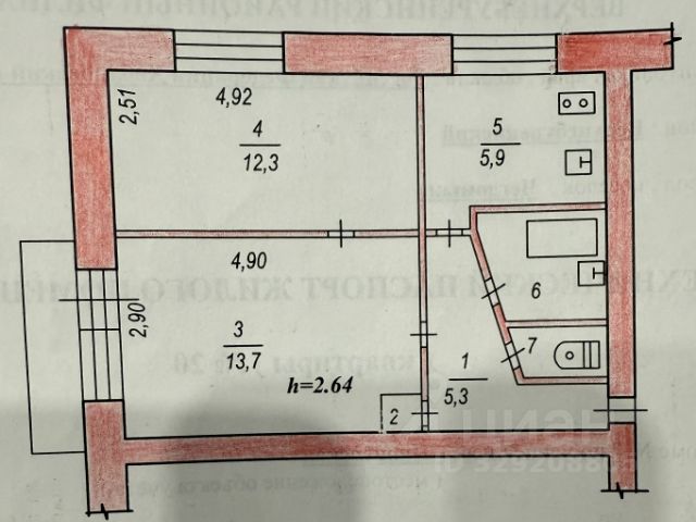 сан узел раздельный 7,30 (2,20+5,10) кв.м.,
