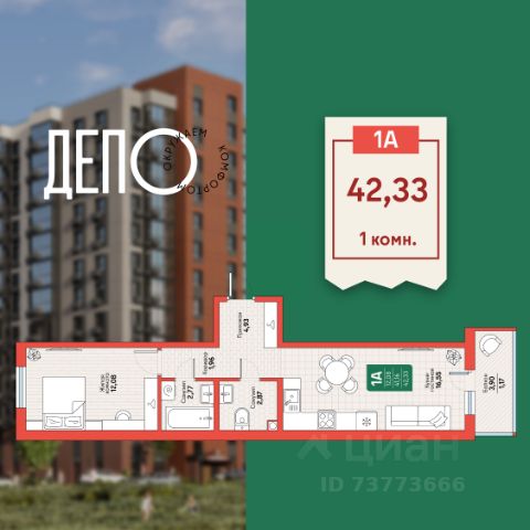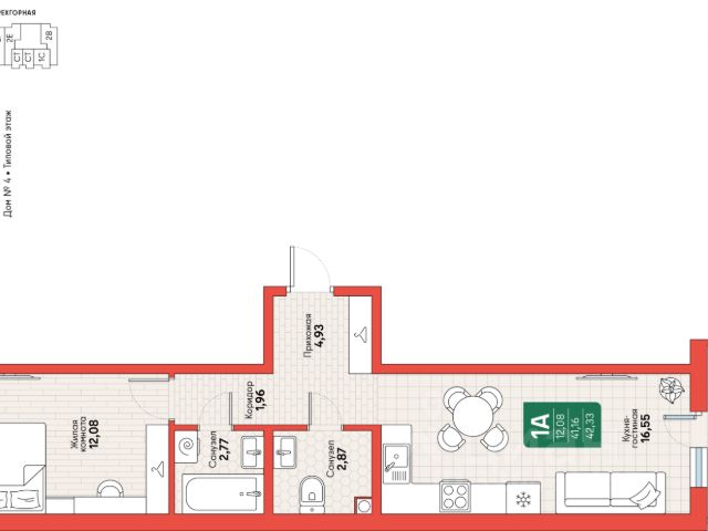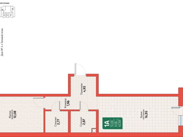 Площадь квартиры с холодными помещениями, 41,60 кв.м.,
