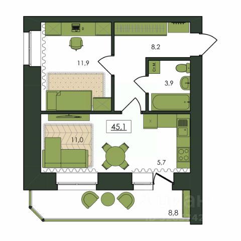 Продаётся 2-комнатная квартира в строящемся доме (Дом 1), срок сдачи: I-кв. 2028, общей площадью 44.1 кв.м., на 2 этаже. Новый жилой комплекс "Клевер" от Специализированного застройщика "Амурком" расположен в г. Благовещенск Амурской области в границах улиц Театральная - Ломоносова - Политехническая - Северная.
