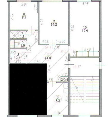 Общая кухня, два санузла, душевая и умывальник.