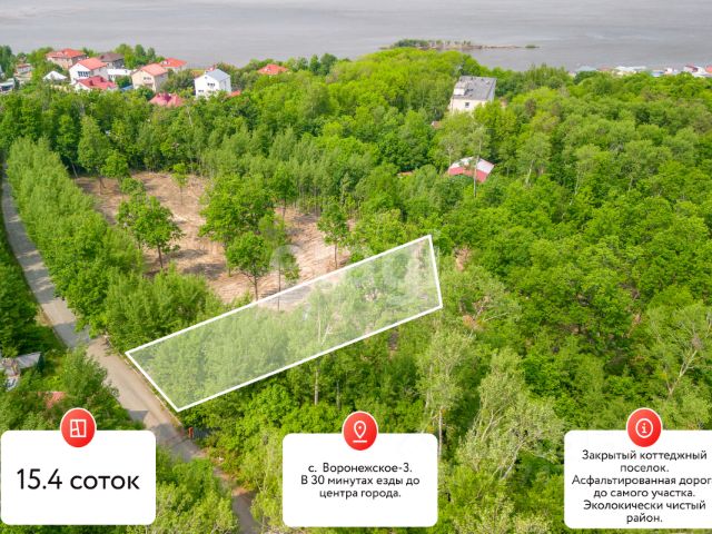 Земельный участок под строительство дома в с. Воронежское 3 Давно хотели себе загородный дом? Любите свежий воздух и простор? Нужен закрытый посёлок? Тогда наше предложение для вас: 1. Земельный участок 15,4 сотки в коттеджном посёлке. 2. До центра города можно добраться 30 минут. 3. Сделано межевание. Вокруг потрясающий лес, река, горы и статусные соседи. 4. Асфальтированная дорога до самого участка. 5. Огороженная и закрытая территория. 6. Есть возможность подключения к газу и электроэнергии, подстанция через дорогу. 7. Рядом лодочная станция и речка. 8. Спроектируем и построим дом "ПОД КЛЮЧ" по индивидуальному проекту. Постройте дом своей мечты и наслаждайтесь загородной жизнью, А наша компания обеспечит вам юридическую и финансовую защиту! С нами сделка пройдёт максимально безопасно и комфортно! Эксперт по решению жилищных вопросов: Бронников Сергей, код риелтора 69694 Код пользователя: 69694 Номер в базе: 8591187