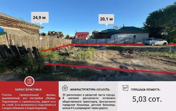 Предлагается к продаже участок общей площадью 5.03 сотки по адресу Загородная, 39/1. Участок прямоугольной формы, выровненный, все постройки убраны. Участок подготовлен к строительству. Рядом с участком находится электрический столб. Есть возможность подключения к водоснабжению и водоотведению. Участок расположен в развитой части города. В шаговой доступности остановки общественного транспорта, Центральная городская больница, Детская городская больница, школа 6, продуктовые супермаркеты. Участок принадлежит одному собственнику. Документы готовы к продаже. Дополнительно оплачивается комиссия с покупателя. Код пользователя: 181900 Номер в базе: 4831087