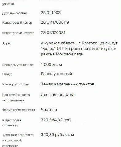 Просьба риэлторам не беспокоить - Ваши услуги не нужны! Земельный участок находится в живописном месте г. Благовещенска в п. Астрахановка, на берегу р. Зея (берег высокий, участок не подтопляемый). Дорога к участку асфальтированная, пыли нет. Электричество проведено. В перспективе газификация. Участок ровный, прямоугольной формы. Документы в порядке, межевание проведено. На участке: бревенчатый дом, 32.6 кв.м. на печном отоплении, времянка, сарай, рассадник, скважина. Очень плодородная земля. Богатый урожай. Растут многолетние цветы и травы, сакура, жимолость, смородина, ирга, лимонник, абрикос, груша, слива, ранет, черёмуха. Участок украшает берёза и голубые ели. Участок можно использовать как для дачи так и для постройки дома.