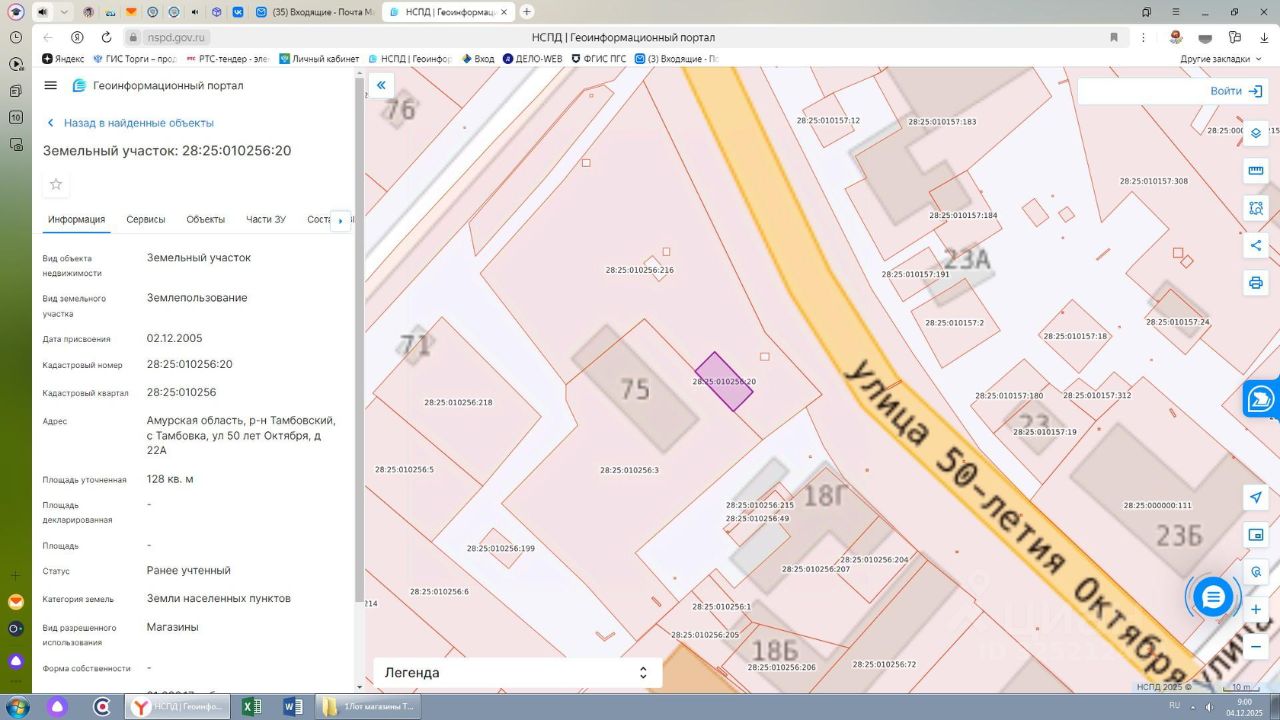 Земельный участок с кадастровым номером 28:25:010256:20, площадью 128 кв.м., местоположение: Амурская область, Тамбовский м.о., с. Тамбовка, ул. 50 лет Октября, д. 22 А, разрешенное использование "Магазины".