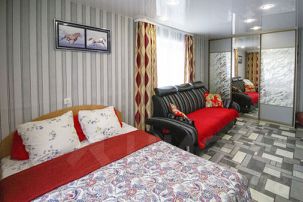Отличная квартира на 5спальных мест (двуспальная кровать и раздвижной диван). В трех кварталах находится автовокзал, ТРЦ Мега, "Клиника семейной медицины". Рядом расположен центральный рынок, ТЦ "XL", рядом с домом хорошее кафе, рестораны, аптека. Возле дома детская площадка и парковка для автомобиля(не далеко есть теплая и охраняемая стоянка)
