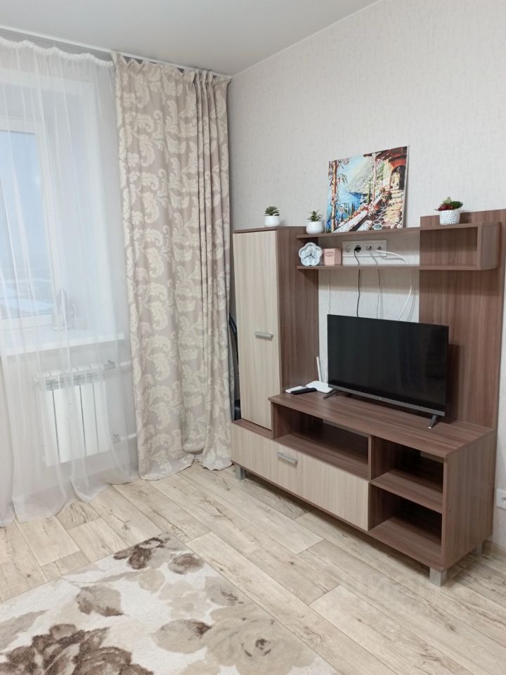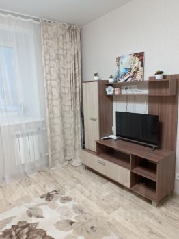 Квартира оборудована всей необходимой техникой: есть кондиционер, холодильник, телевизор и стиральная машина. В комнате и на кухне установлена современная мебель, поэтому можно сразу заезжать и жить. Ванная комната оснащена ванной, совмещённый санузел выполнен в светлых тонах. Лоджия предоставляет дополнительное пространство для отдыха.