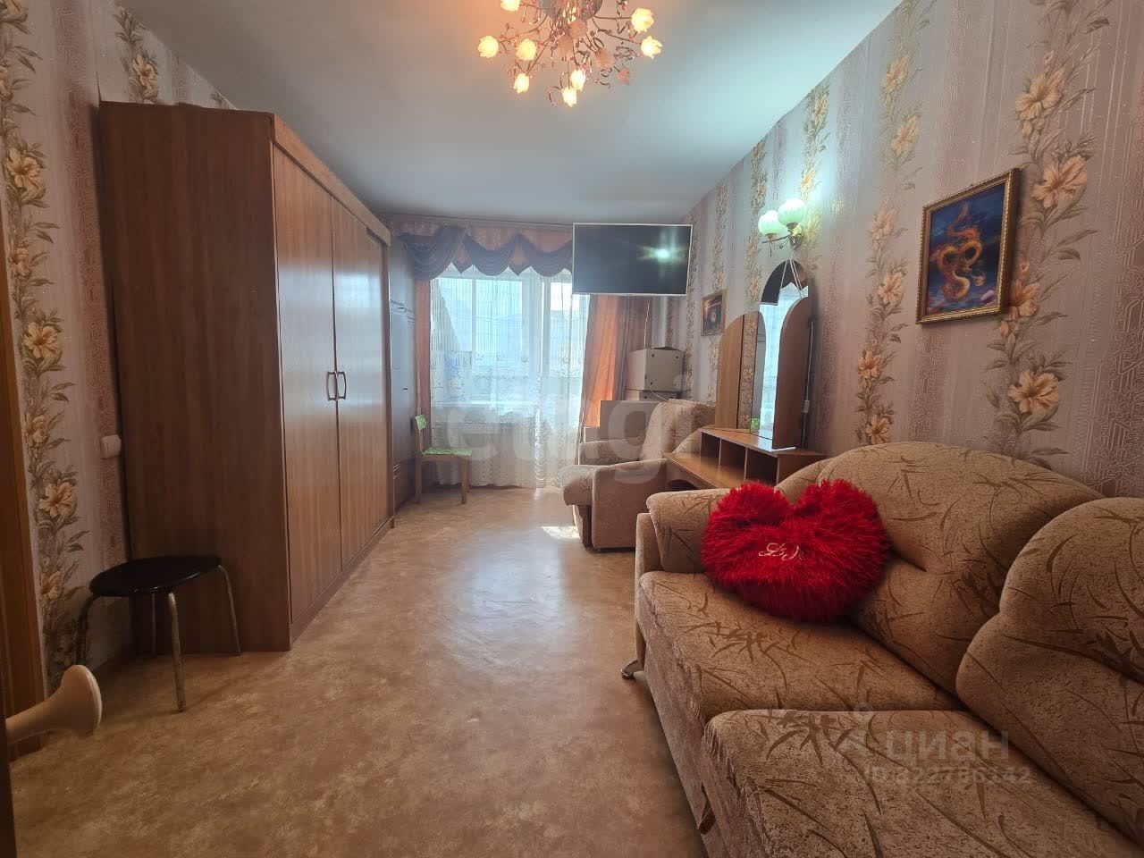 Диван , два раскладных кресла , шкаф, трельяж , кухонный гарнитур , холодильник , эл. плита , вытяжка , два телевизора , кухонный стол , обеденный стол , три стула , пылесос , чайник , палас (овальный 5 * 3 ) , водонагреватель , стиральная машинка .