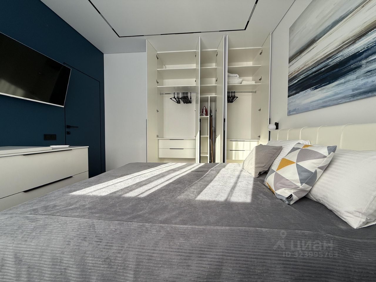 В квартире расположена большая двуспальная кровать и раскладной односпальный диван. Подушки и одеяла предусмотрены на все спальные места.