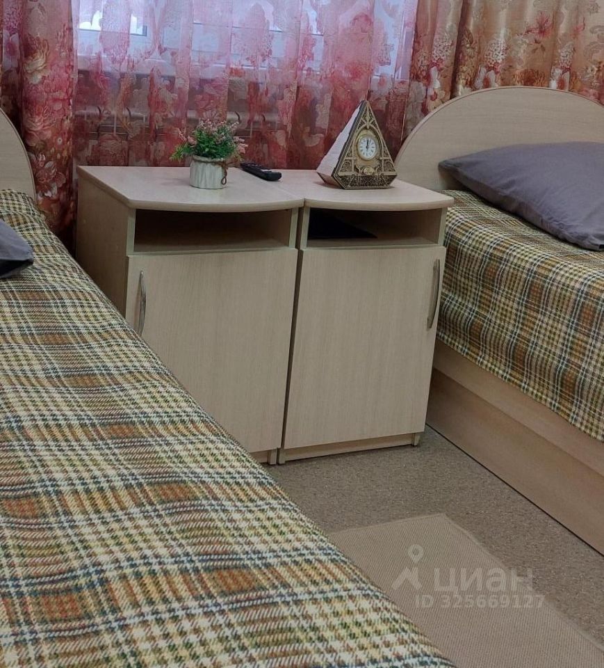 2 полутороспальные кровати, телевизор с плоским экраном, холодильник, столик, стулья, чайник, посуда, шкаф, тумбочка, зеркало, душ и туалет на этаже.