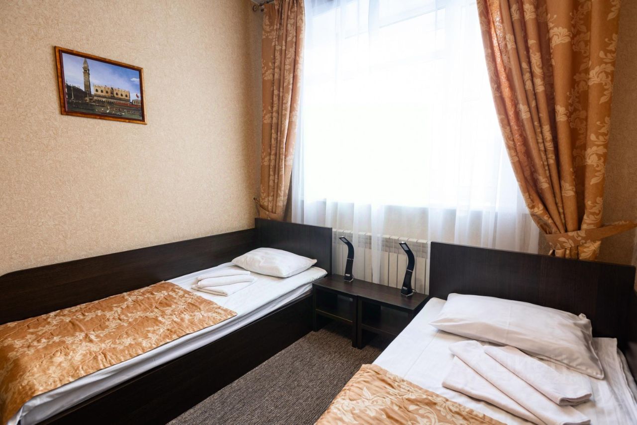 Двухместный номер состоящий из одной жилой комнаты с двумя односпальными кроватями, рассчитанный на проживание одного/двух человек,завтрак включен в стоимость номера (LCD телевизор, кондиционер, холодильник, электрический чайник, 2 комплекта посуды, одноразовые гигиенические наборы, халат, тапочки, WI-FI), с полным санузлом , рассчитанный на проживание одного/двух человек. На территории имеется парковка.