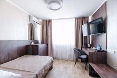Стандартный одноместный однокомнатный номер 18 кв.м., после реновации в 2024 году. Современный ремонт. Вид из номера на городскую площадь либо во внутренний тихий двор гостиницы. Одноместные размещение. В номере полутороспальная кровать, стол, стул, тумба для багажа, тв., интернет, телефон, чайник, набор посуды, шкаф купе, санузел, душ или ванна, набор полотенец, фен.