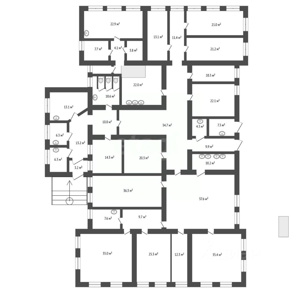 Административное здание с отдельным входом. Площадь 987,6 кв. Земельный участок - пятнадцать соток.