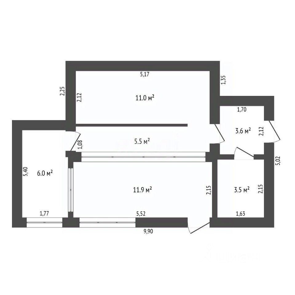 Общая площадь: 41,5 квадратных метров
