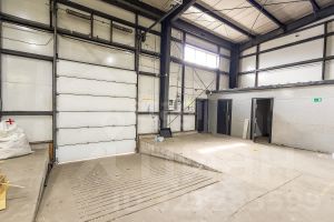 Цех , Площадь 1079,3 кв.м., - это склад разделенный на две половины, в каждую половину есть свой вход, в первой половине трое ворот и одна дверь, во второй половине одни ворота для разгрузки .