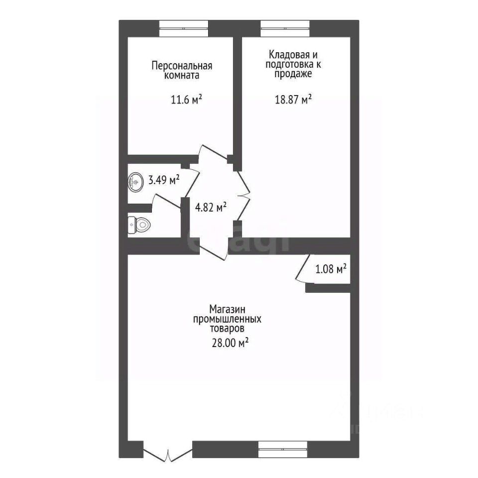 Планировка без несущих стен, что позволяет распланировать пространство по необходимости под свой вид деятельности.