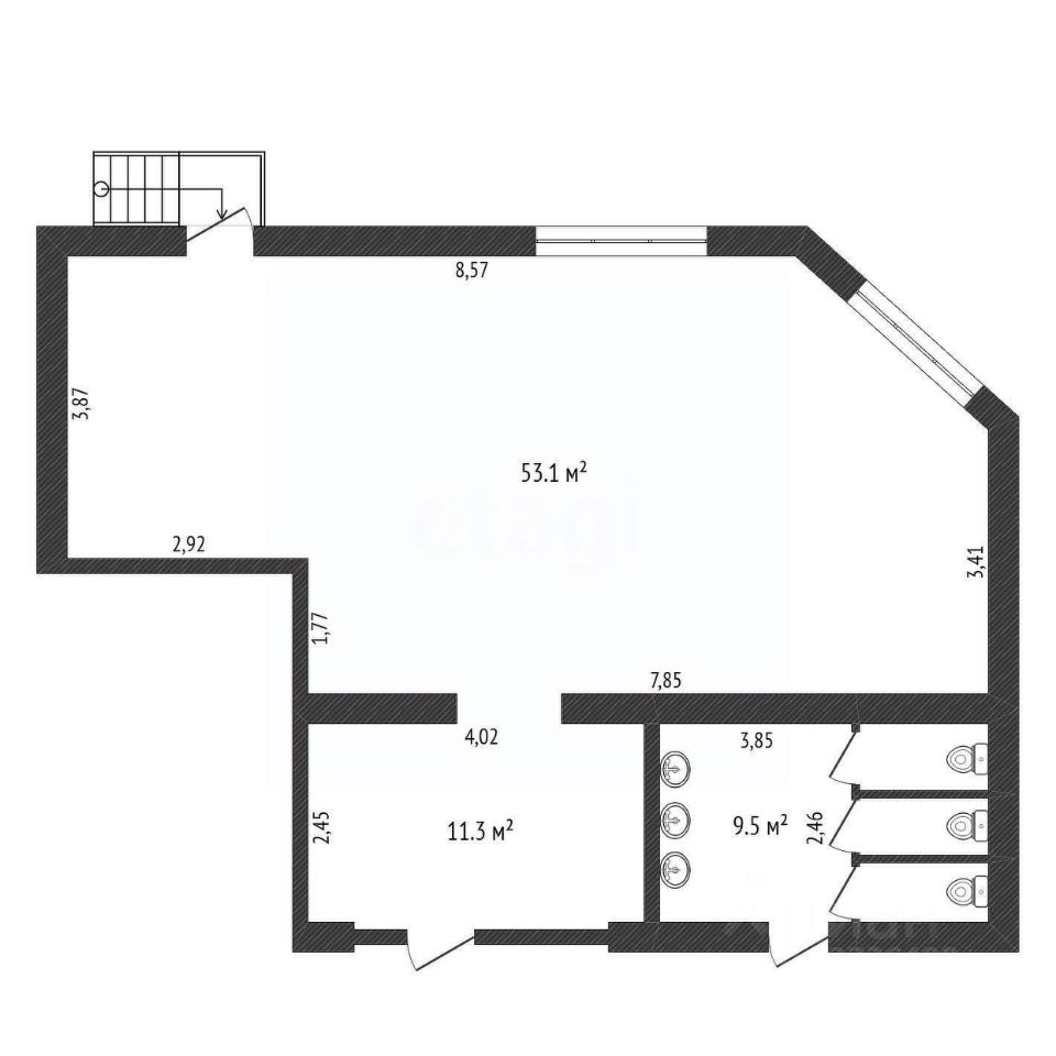 Два входа, с вестибюля бизнес-центра и собственный отдельный! Отличная планировка - светлый большой зал с двумя окнами, места для хранения, санузел на этаже. Подойдет под большинство видов деятельности. В данный момент сдается в аренду.