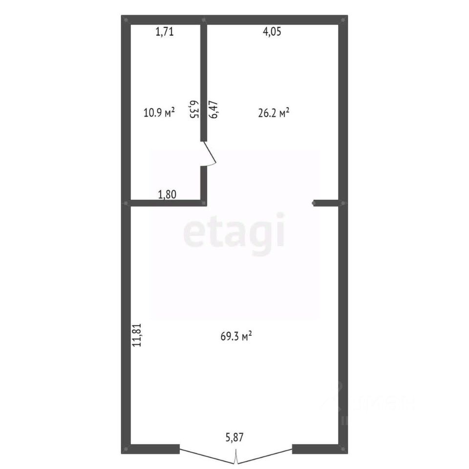 Общая площадь территории 1259 кв.м. На территории имеется капитальное здание площадью - 106,4 кв.м + пристройка 100 кв.м.