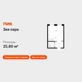 Продаётся квартира-студия площадью 25,8 кв.м на 3 этаже 9 этажного дома (Корпус 3, Секция 1) проекта ПИК Зея парк. Светлый просторный подъезд на уровне земли, функциональная планировка, большие окна, предчистовая отделка.