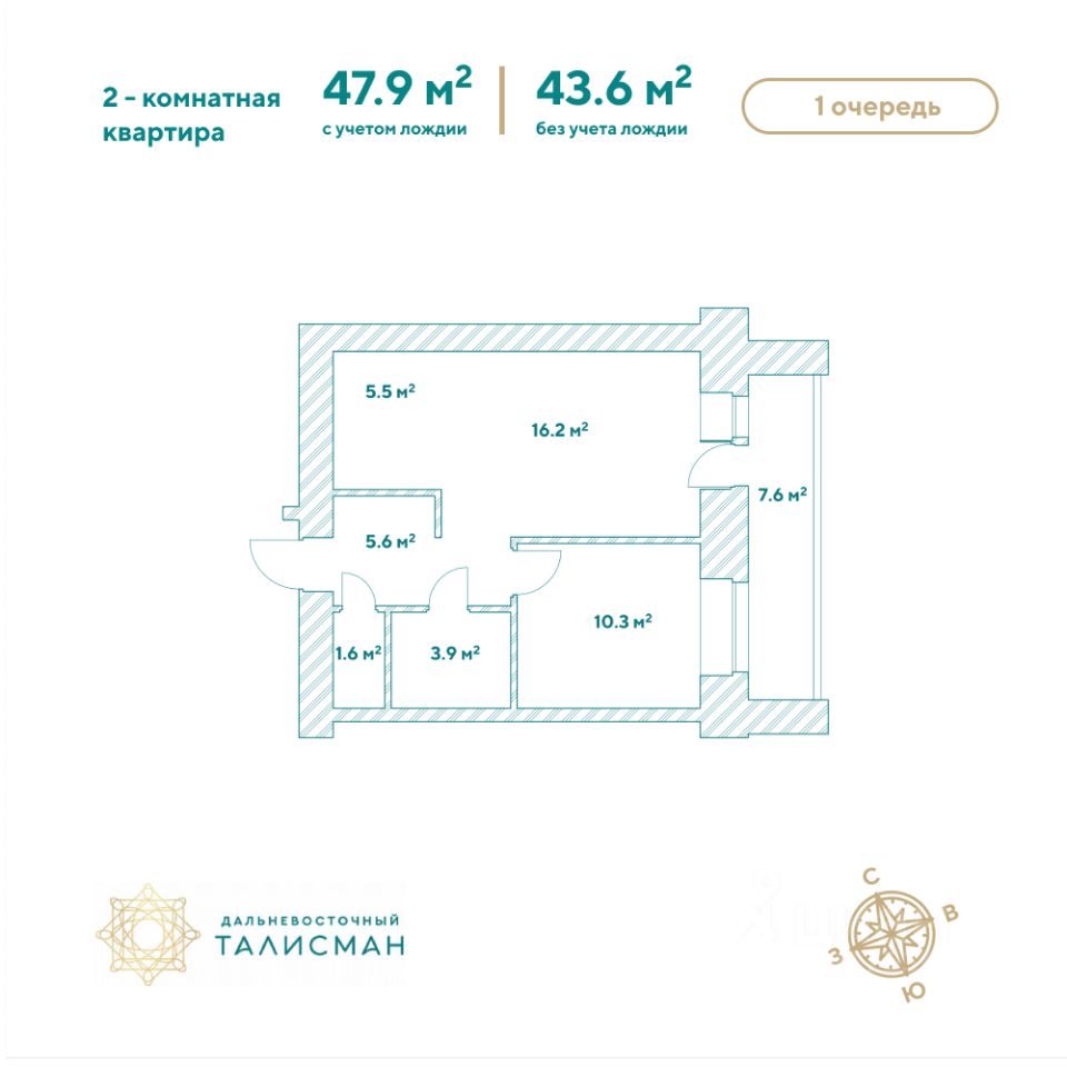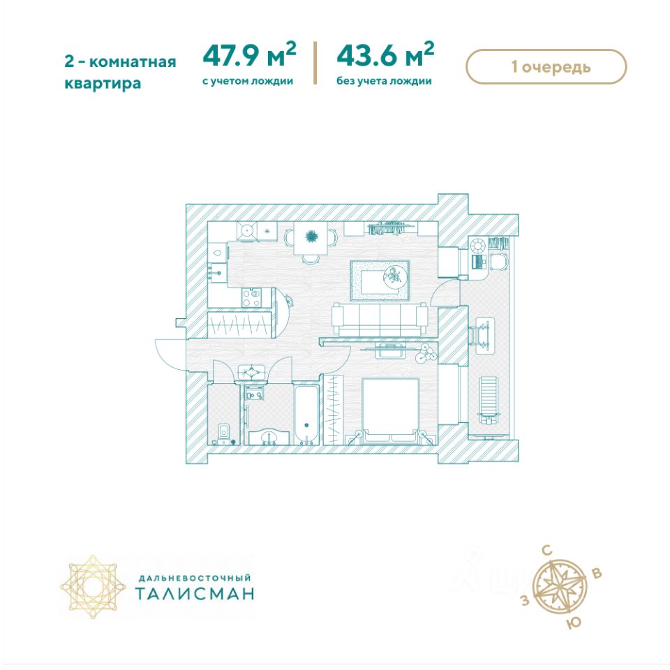 Продаётся 2-комнатная квартира в сданном доме (Партизанская, 64/2), срок сдачи: III-кв. 2025, общей площадью 47.7 кв.м., на 8 этаже. Жилой комплекс "Дальневосточный Талисман" расположен в 93 квартале Благовещенска.