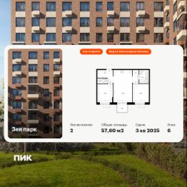 Продаётся 2-комн. квартира площадью 57,6 кв.м на 6 этаже 9 этажного дома (Корпус 3, Секция 1) проекта ПИК Зея парк. Светлый просторный подъезд на уровне земли, функциональная планировка, большие окна, без отделки.
