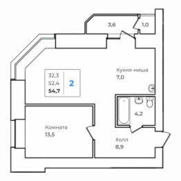 Общая площадь54,7 м²