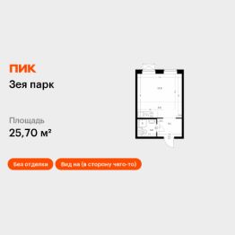 Продаётся квартира-студия площадью 25,7 кв.м на 5 этаже 9 этажного дома (Корпус 3, Секция 1) проекта ПИК Зея парк. Светлый просторный подъезд на уровне земли, функциональная планировка, большие окна, без отделки.