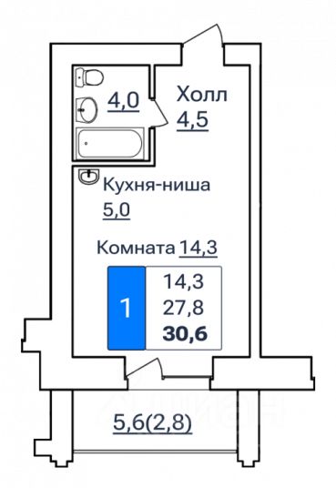 30,6 м²