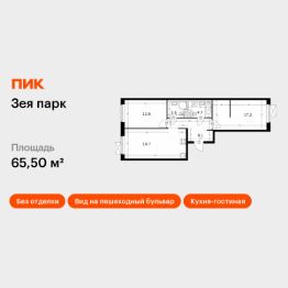 Продаётся 2-комн. квартира площадью 65,5 кв.м на 9 этаже 9 этажного дома (Корпус 3, Секция 1) проекта ПИК Зея парк. Светлый просторный подъезд на уровне земли, функциональная планировка, большие окна, без отделки.