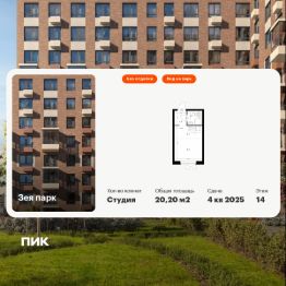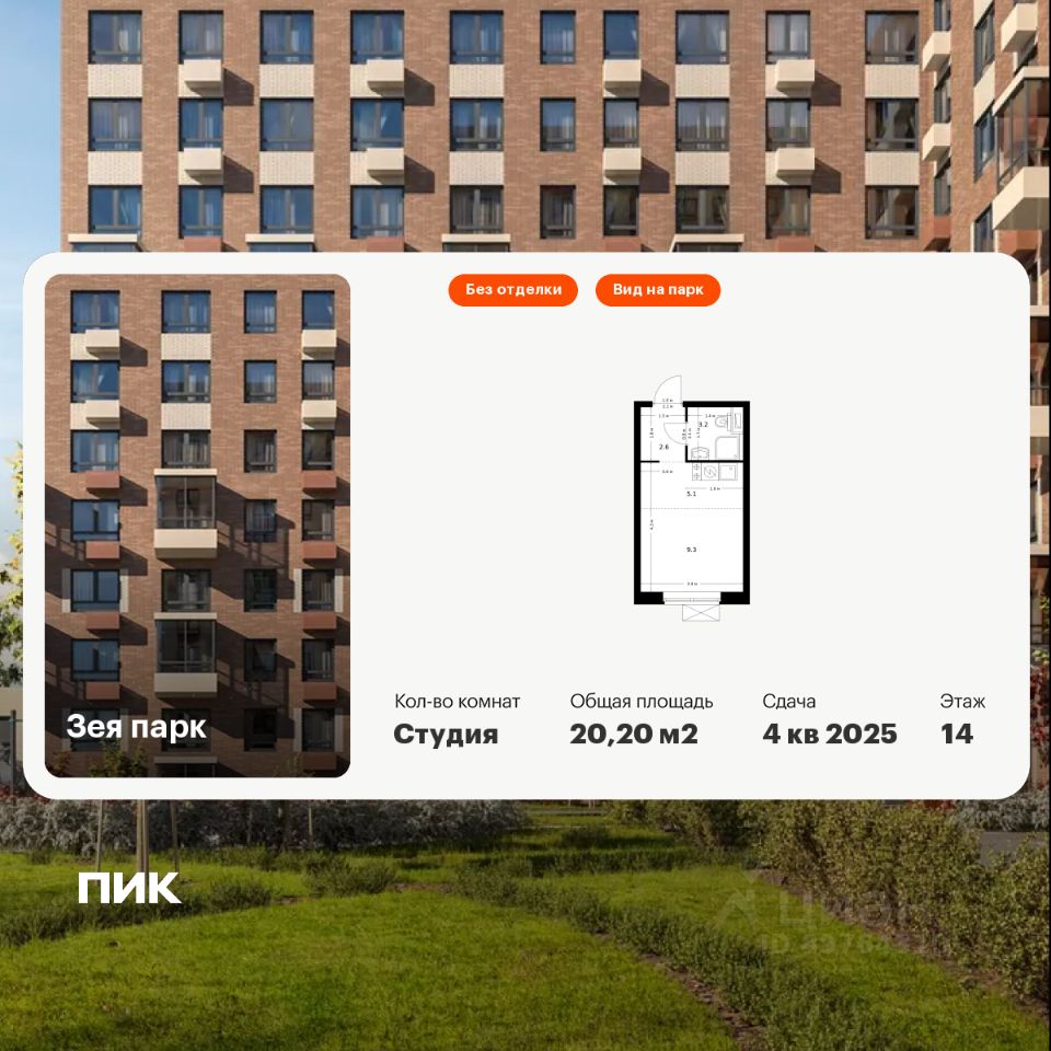 Продаётся квартира-студия площадью 20,2 кв.м на 14 этаже 16 этажного дома (Корпус 4, Секция 1) проекта ПИК Зея парк. Светлый просторный подъезд на уровне земли, функциональная планировка, большие окна, без отделки.