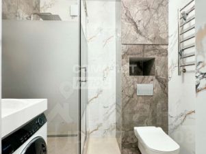 С/у отделам керамогранитом. Установлен теплый пол, а так же скрытый люк на водонагреватель и счетчики.