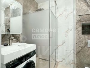 Имеется душевая, раковина, зеркало, электрический полотонцесушитель.