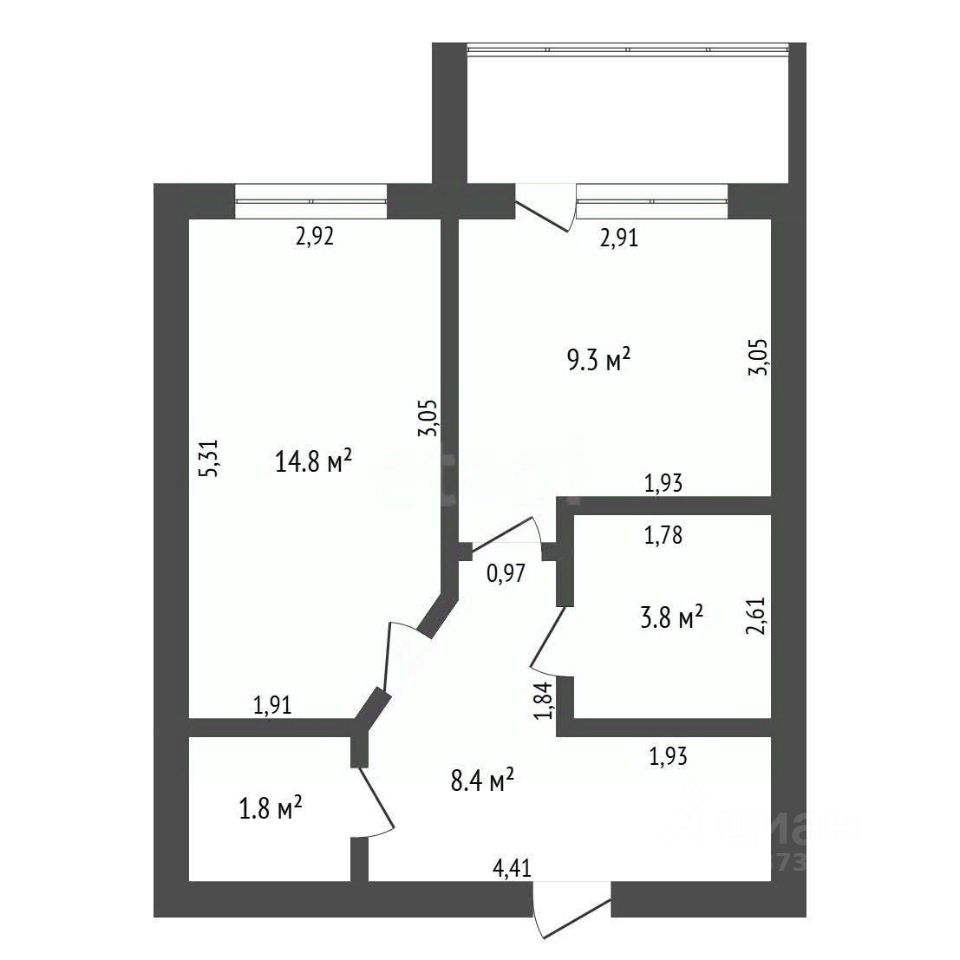 Oбщая площaдь - 40,3 кв.м.