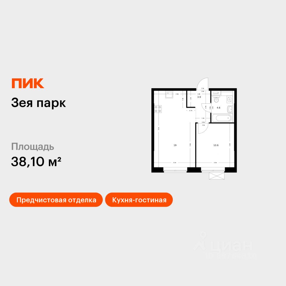 Продаётся 1-комн. квартира площадью 38,1 кв.м на 8 этаже 9 этажного дома (Корпус 3, Секция 2) проекта ПИК Зея парк. Светлый просторный подъезд на уровне земли, функциональная планировка, большие окна, предчистовая отделка.