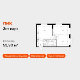 Продаётся 2-комн. квартира площадью 53,9 кв.м на 8 этаже 9 этажного дома (Корпус 3, Секция 2) проекта ПИК Зея парк. Светлый просторный подъезд на уровне земли, функциональная планировка, большие окна, предчистовая отделка.