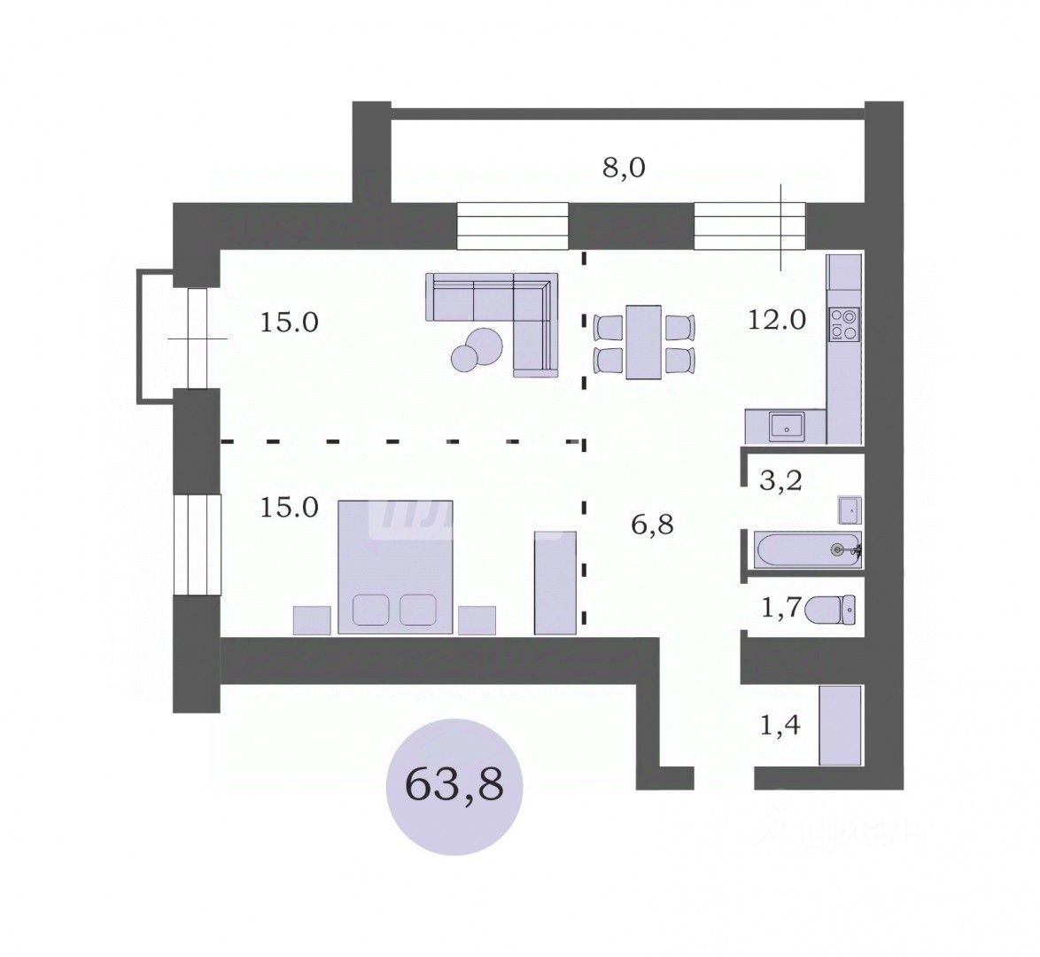 63,8 м²